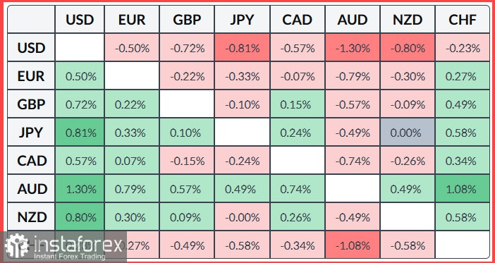 В таблице ниже показано процентное изменение курса доллара США по отношению к основным валютам за неделю. Доллар США проявил наибольшую силу по отношению к швейцарскому франку.