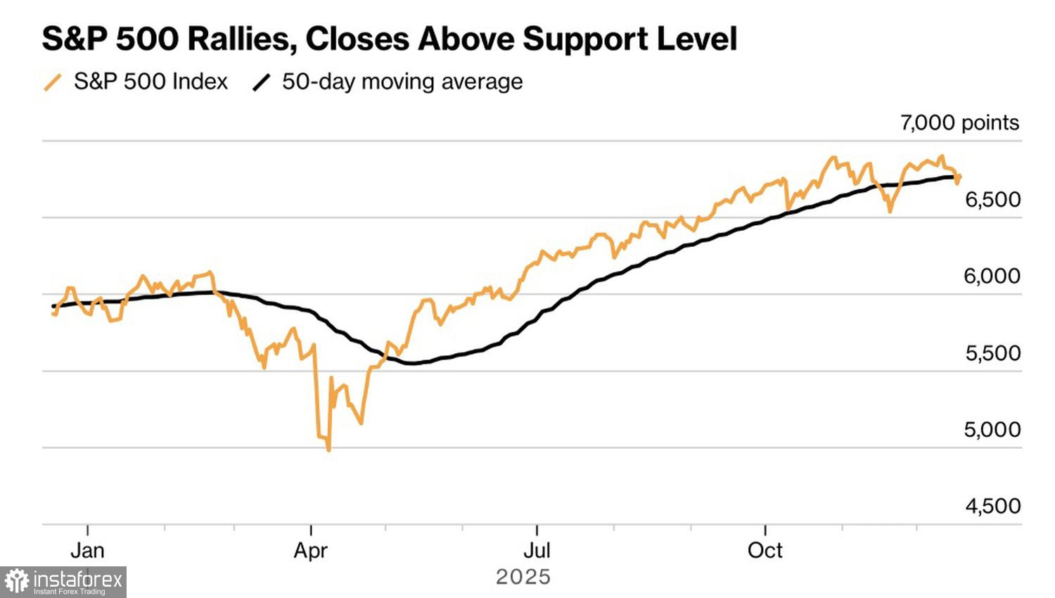 Несмотря на заигрывание широкого фондового индекса с 50-дневной скользящей средней, более трех четвертей опрошенных Bloomberg управляющих активами позиционируют себя для более рискованной среды в 2026. Deutsche Bank, Morgan Stanley и RBC Capital Markets прогнозируют более чем 10%-е ралли S&P 500 в следующем году.