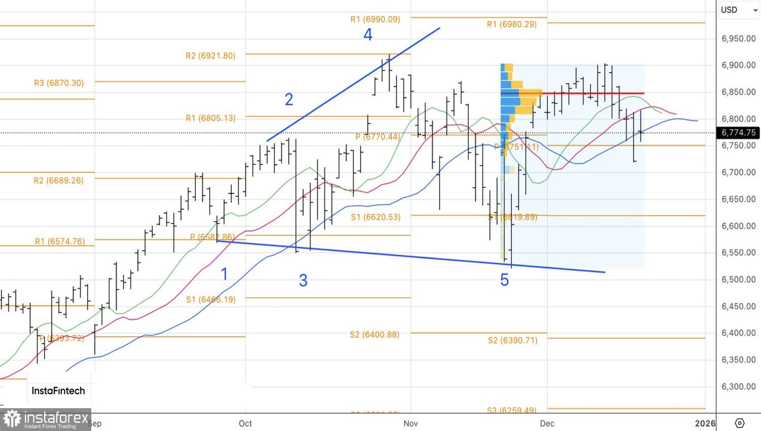 19.12.2025 09:56S&P 500 с честью прошел испытание релизом данных по американской инфляции, хотя и не смог воспользоваться замедлением потребительских цен до 2,7% и базового индикатора до 2,6%. Инвесторы не особенно доверяют данным от BLS после длительного шатдауна. Впрочем, по мнению Wells Fargo, дезинфляционный тренд продолжается, пусть последняя статистика и преувеличивает масштабы снижения CPI.