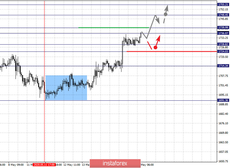 По Gold продолжения движения кверху ожидаем после прохода ценой шумового диапазона 1736.07 – 1739.99, уровень 1724.03 ключевая поддержка. По #CL последующие цели в масштабе Н1, определяем от локальной восходящей структуры 7 мая, уровень 29.31 ключевое сопротивление, уровень 26.39 ключевая поддержка. По Silver ожидаем достижения уровня 16.36, уровень 15.81 ключевая поддержка. По #NG цена находится в коррекции, уровень 1.724 ключевое сопротивление для верха.