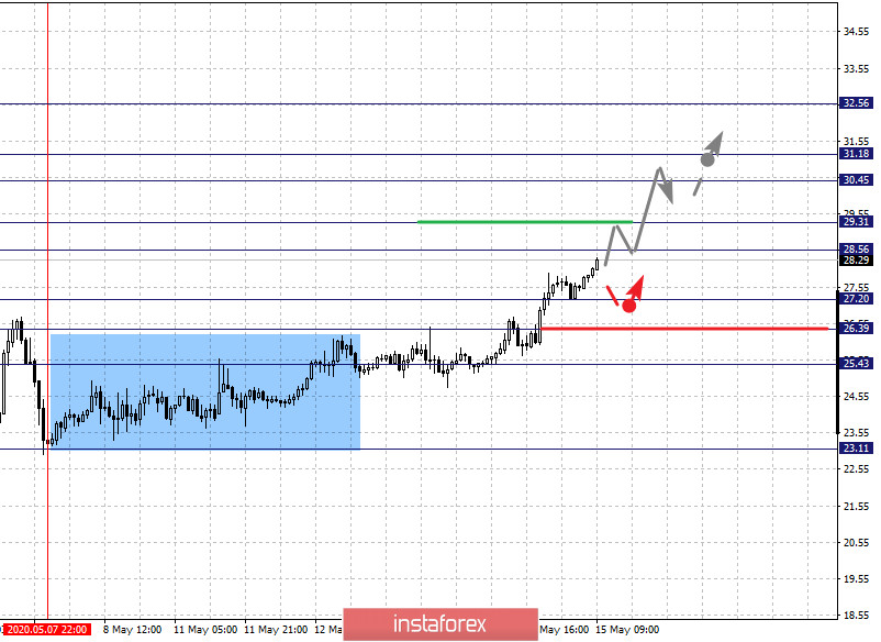Краткосрочное нисходящее движение возможно в коридоре 27.20 – 26.39, пробой последнего значения приведет к углубленной коррекции, здесь цель – 25.43, этот уровень является ключевой поддержкой для верха.