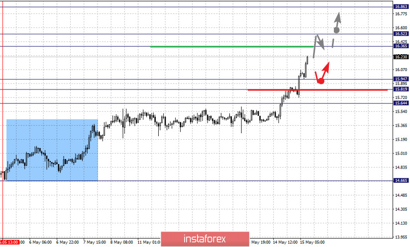 Краткосрочное нисходящее движение возможно в коридоре 15.94 – 15.81, пробой последнего значения приведет к углубленной коррекции, здесь цель – 15.64, этот уровень является ключевой поддержкой для восходящей тенденции.